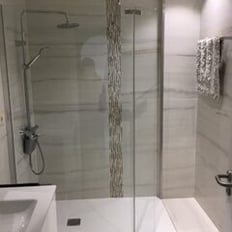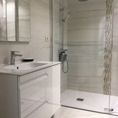 Salle de bain : Douche à l’italienne, meuble lavabo, WC séparé